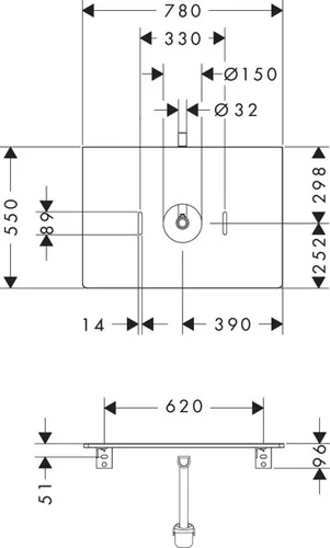 - In combinatie met een hansgrohe mengkraan is het verlengstuk voor de afvoer verplicht (#56840000)