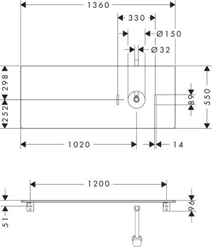 hansgrohe Xelu Q Konsole mit runden Ausschnitt rechts, 1360x550, für Aufsatzwaschtisch, ohne Hahnloch
