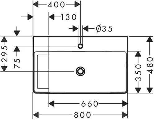 hansgrohe Xelu Q wastafel met planchet links, zonder kraangat, zonder overloop, met pop-up afvoergarnituur, 800x480mm, wit