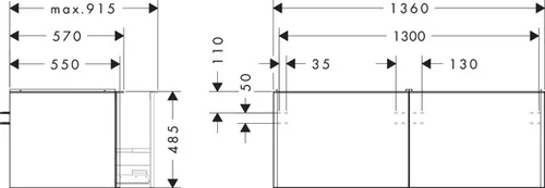 hansgrohe Xelu Q Waschtischunterschrank, 1360x550, 2 Schubkästen, für Konsolen mit Aufsatzwaschtisch, geschliffen