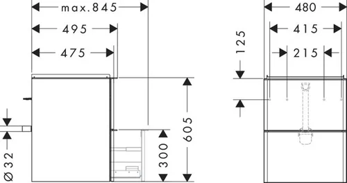 hansgrohe Xelu Q Waschtischunterschrank, 480x475, 2 Schubkästen, für Handwaschbecken