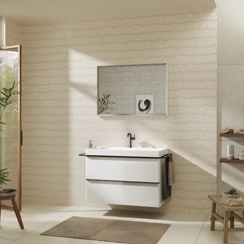 - Meer ruimte: geschikt voor ruimtebesparende sifon, dus zonder storende sifonuitsparing