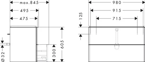 hansgrohe Xelu Q wastafelmeubel, 980x475, 2 laden, voor wastafel