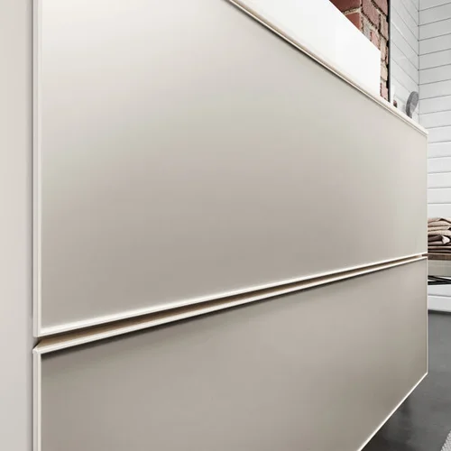 - Materiaal voorkant ( wit metallic / zandbeige metallic / leigrijs metallic):