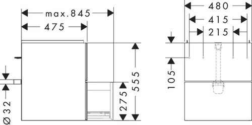 hansgrohe Xevolos E Waschtischunterschrank, 2 Schubkästen, SoftClose, 480x475x555mm, für Handwaschbecken