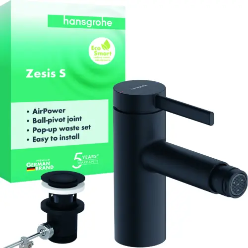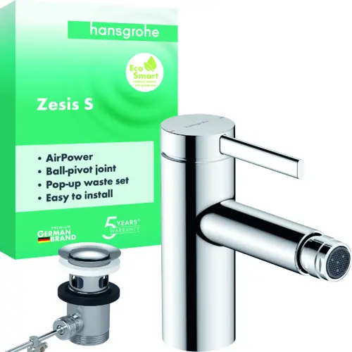 hansgrohe Zesis S Einhebel-Bidetmischer mit Metall Zugstangen-Ablaufgarnitur, Ausladung 122mm