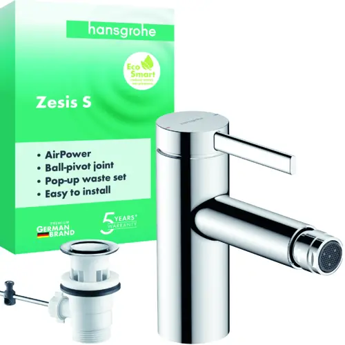 hansgrohe Zesis S Einhebel-Bidetmischer mit Zugstangen-Ablaufgarnitur, Ausladung 122mm
