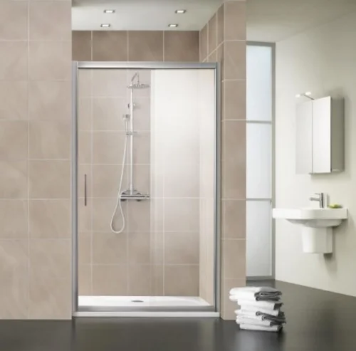HSK Favorit Schiebetür 2-teilig, mit Bodenprofil, Größe: 120 x 185 cm, Festelement rechts