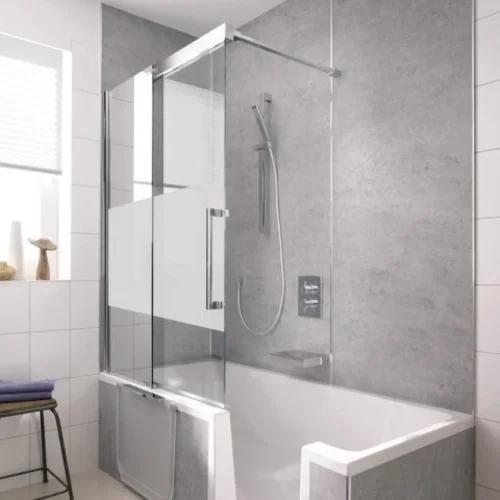 HSK K2P Badewannenaufsatz, Schiebetür 2-teilig, Größe: 104,0 x 150,0 cm, Festelement links