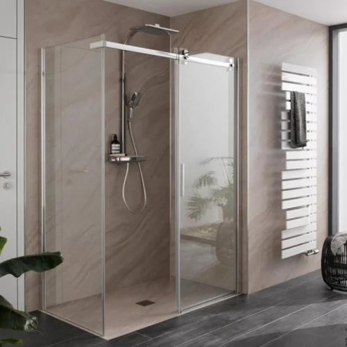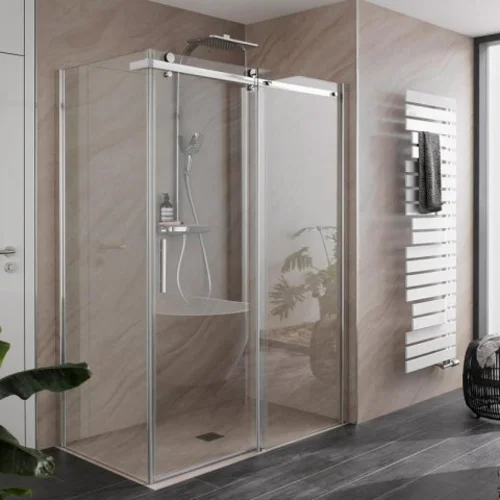 HSK Premium Softcube Schiebetür 2-teilig mit Seitenwand, Größe: 140,0 x 80,0 cm, Festelement rechts