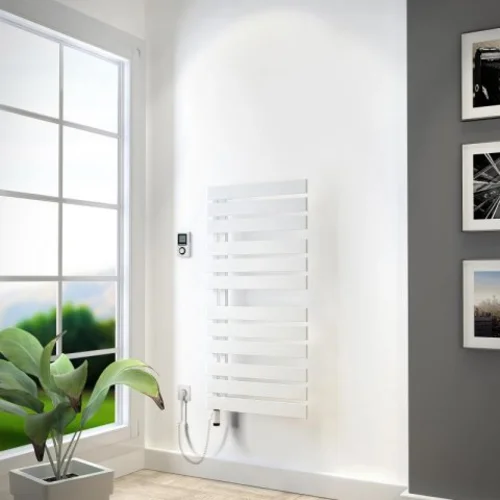 HSK Yenga Badheizkörper für rein elektrischen Betrieb, 600 W, Größe: 60,0 x 118,6 cm, Heizstab silber, Heizstab links, Öffnung Rohre rechts