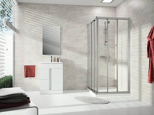 - gerahmter Eckeinstieg mit vier Gleittürsegmenten