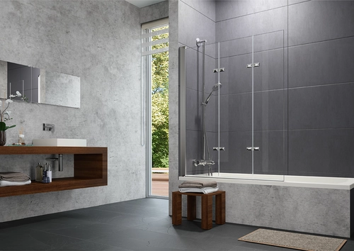 HÜPPE Design pure Badewannenabtrennung, 3-teilig, linksseitige Befestigung, Maßanfertigung, Breite 1000-1200mm, Höhe 1200-1500mm