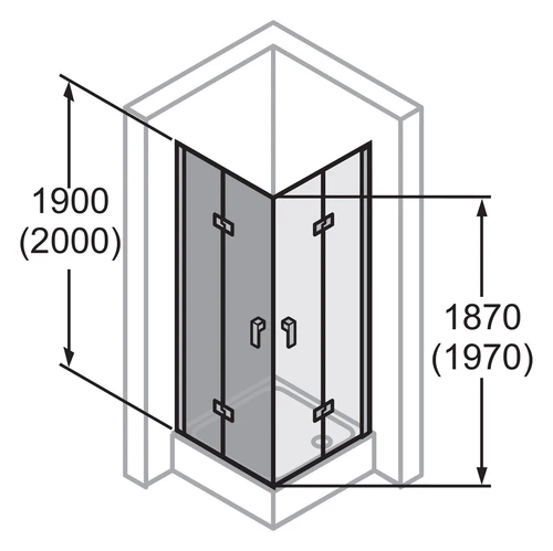 - Für Schwingfalttür in Nische oder Kombination Tür mit kurzer Seitenwand ist ein "Ergänzungsset Nische" erforderlich (separat zu bestellen!)