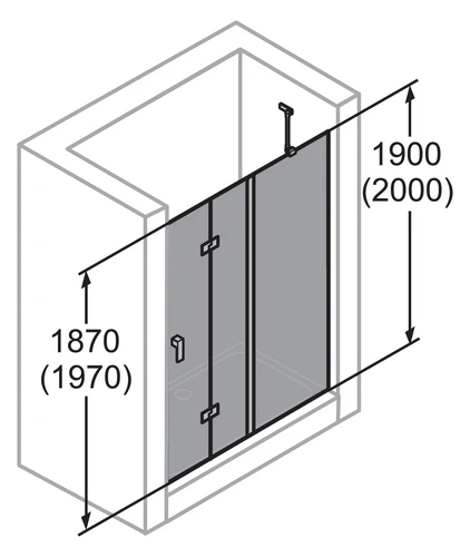 - Für Schwingfalttür mit festem Segment in Nische oder Kombination Tür mit kurzer Seitenwand ist ein "Ergänzungsset Nische" erforderlich.(separat zu bestellen!)