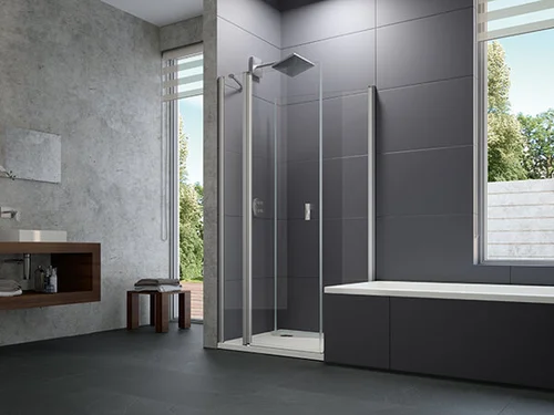 - Seitenwand ist kombinierbar mit Schwingtür, Schwingtür mit festem Segment, Schwingfalttür und Schwingfalttür mit festem Segment