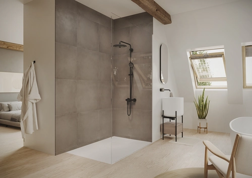 - Alleinstehende Walk-In Dusche zum Einbau auf Duschwanne oder direkt auf den Fliesenboden