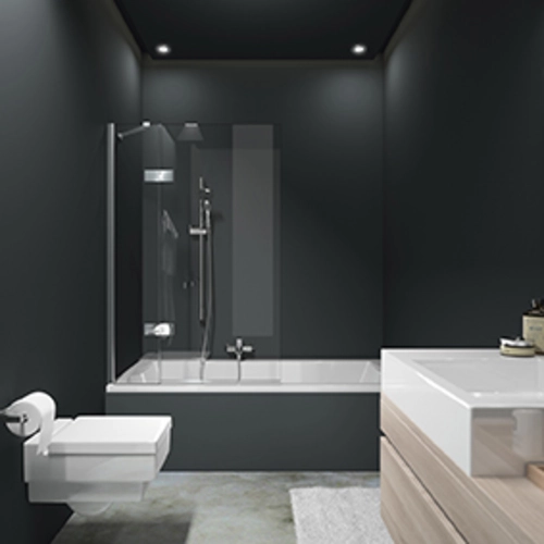 HÜPPE Solva Badewannenabtrennung, festes Segment, 1-teilig, Maßanfertigung, linksseitige Befestigung, teilgerahmt, Breite 600-1200mm, Höhe 1200-2000mm