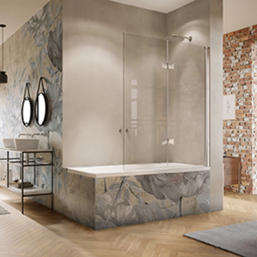 HÜPPE Solva Badewannenabtrennung, Schwingfalttür, Maßanfertigung, rechtsseitige Befestigung, teilgerahmt, Breite 500-1250mm, Höhe 1200-2000mm