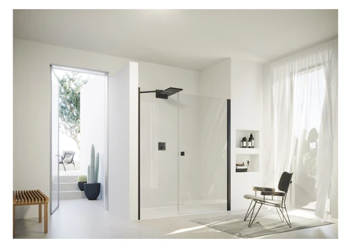 - Verglasung mit 8 mm Einscheiben-Sicherheitsglas, optional mit der pflegeleichten Oberflächenveredelung HÜPPE Anti-Plaque