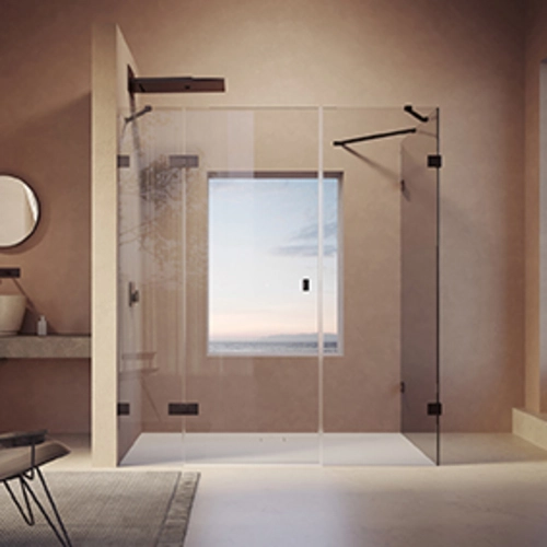 HÜPPE SolvaPro Schwingtür rahmenlos, festes Segment und Seitenwand, Nebenteil, linksseitige Befestigung, Breite Tür 900-1200mm, Höhe 2001-2200mm, Breite Seitenwand 1201-1800mm, Maßanfertigung