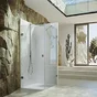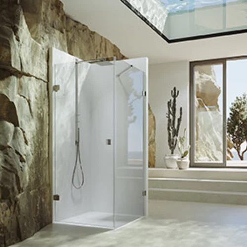 HÜPPE SolvaPro Schwingtür rahmenlos, mit Seitenwand, linksseitige Befestigung, Breite Tür 500-1000mm, Höhe 1200-2000mm, Breite Seitenwand 200-1200mm, Maßanfertigung