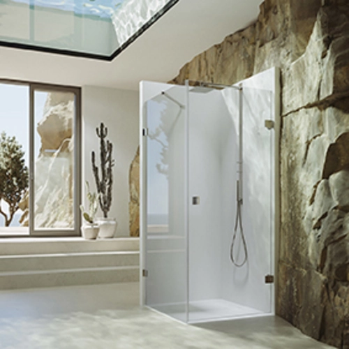 HÜPPE SolvaPro Schwingtür rahmenlos, mit Seitenwand, rechtsseitige Befestigung, Breite Tür 500-900mm, Höhe 2001-2200mm, Breite Seitenwand 200-1200mm, Maßanfertigung