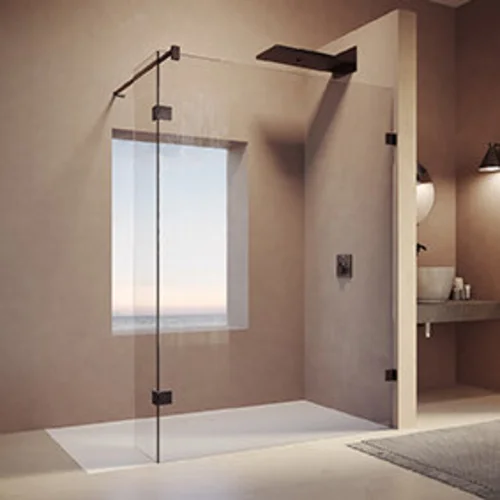 HÜPPE SolvaPro Seitenwand, mit beweglichem Segment, Walk-In, rechtsseitige Befestigung, Breite B1 1201-1800mm, Höhe 2001-2200mm, Breite B2 300-600mm, Maßanfertigung
