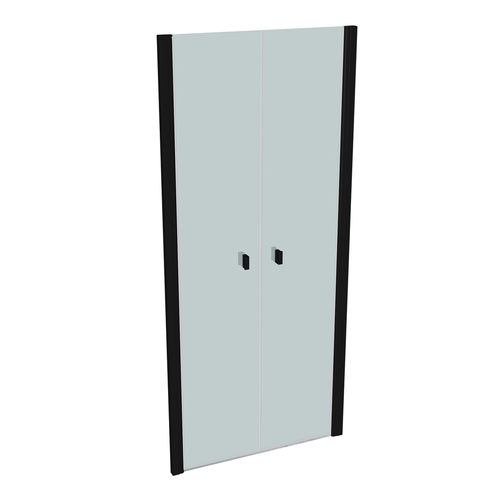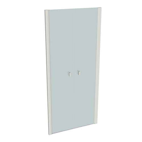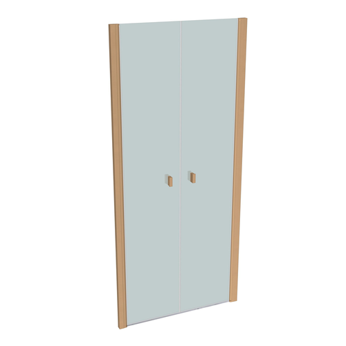 - Teilgerahmte Tür mit zwei Glasflügeln, nach innen und außen öffnend