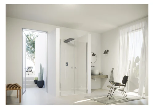 • Verglasung mit 8 mm Einscheiben-Sicherheitsglas, optional mit der pflegeleichten Oberflächenveredelung HÜPPE Anti-Plaque