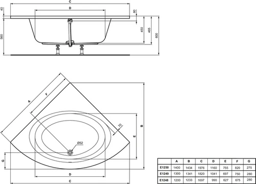 Ideal Standard Connect Air Eck-Badewanne 1400x1400x465mm, Weiß