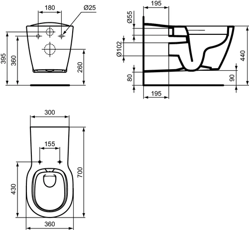Ideal Standard Connect Freedom Wandtiefspül-WC Barrierefrei, ohne Spülrand