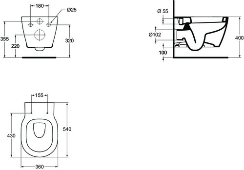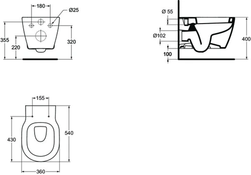 Ideal Standard Connect Wandtiefspül-WC, glasierter geschlossener Spülrand, 360x540x340mm