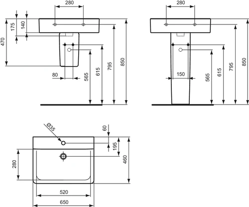 Ideal Standard Connect Waschtisch, 1 Hahnloch, ohne Überlauf, 650x460x175mm