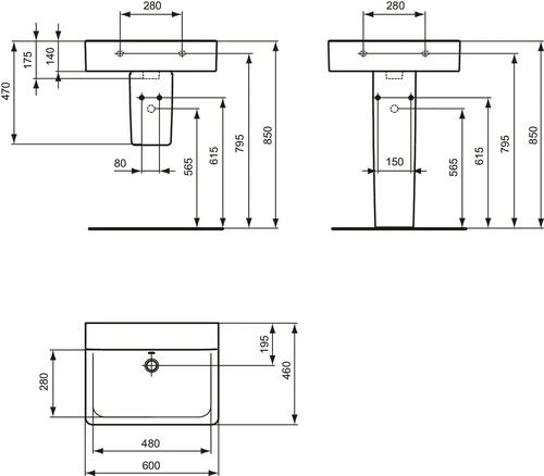 Ideal Standard Connect Waschtisch, ohne Hahnloch, mit Überlauf, 600x460x175mm
