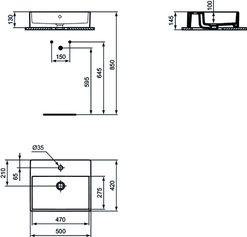 Ideal Standard Strada Aufsatzwaschtisch 500mm, 1 Hahnloch, mit Überlauf