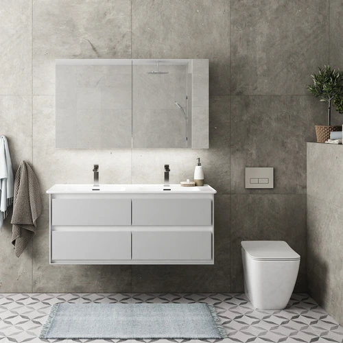 Ideal Standard Strada II Möbeldoppelwaschtisch 1240mm, je 1 Hahnloch, mit Überlauf