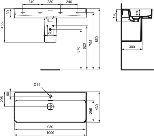 - Dimensions extérieures L x P x H : 1000 x 430 x 170 mm