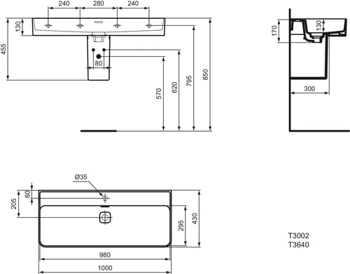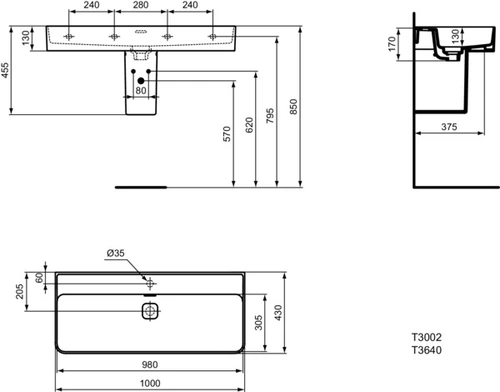Ideal Standard Strada II lavabo 1000 mm, senza foro per rubinetto, con troppopieno