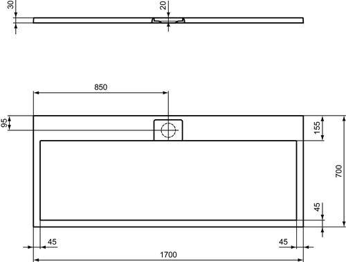 - Buitenafmetingen (BxDxH): 1700x700x30 mm