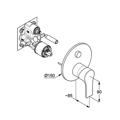- 1 miscelatore monocomando da incasso per vasca e doccia