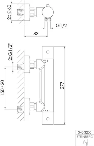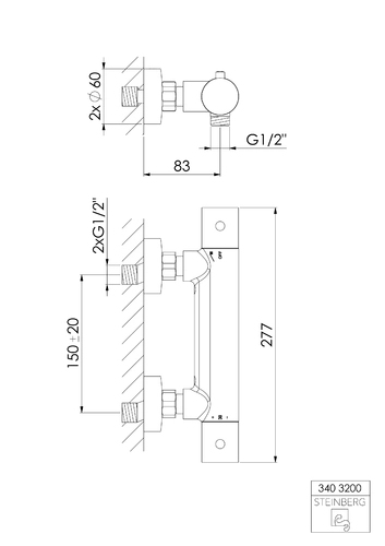 Termostato da superficie Steinberg serie 340, per doccia, controllo della temperatura e del flusso