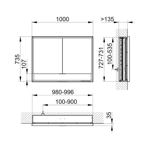 • Larghezza x altezza x profondità: 1000 x 735 x 165 mm