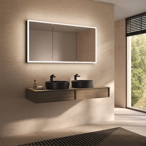 armadietto a specchio Schneider GLOW D2W, 3 ante 45/50/45cm, 1413x136x736mm, illuminazione a 360°, Dim2Warm