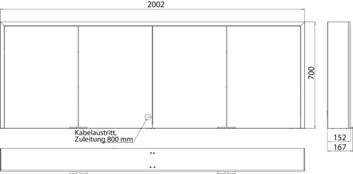 - Dimensioni (LxPxH): 2002 x 167 x 700 mm