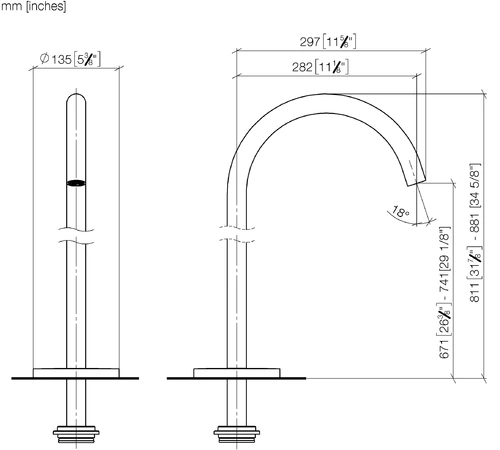 - Altezza fino all'aeratore 671 - 741 mm