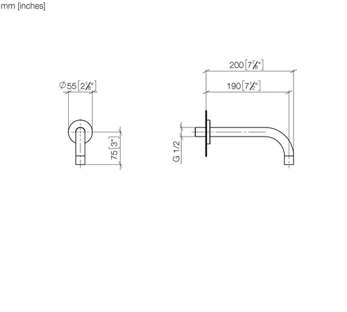 Bocchetta per lavabo a parete Dornbracht TARA senza scarico, sporgenza 190 mm