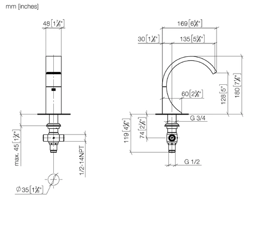 - Altezza rubinetto 180 mm