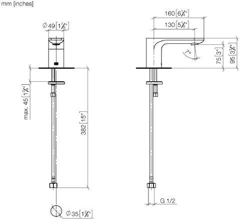 - Altezza fino all'aeratore 75 mm