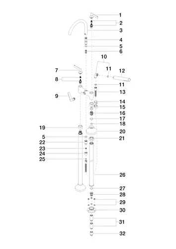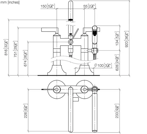 Dornbracht VAIA miscelatore a due fori per vasca, installazione libera, set per doccetta, maniglia a leva, sporgenza 221 mm